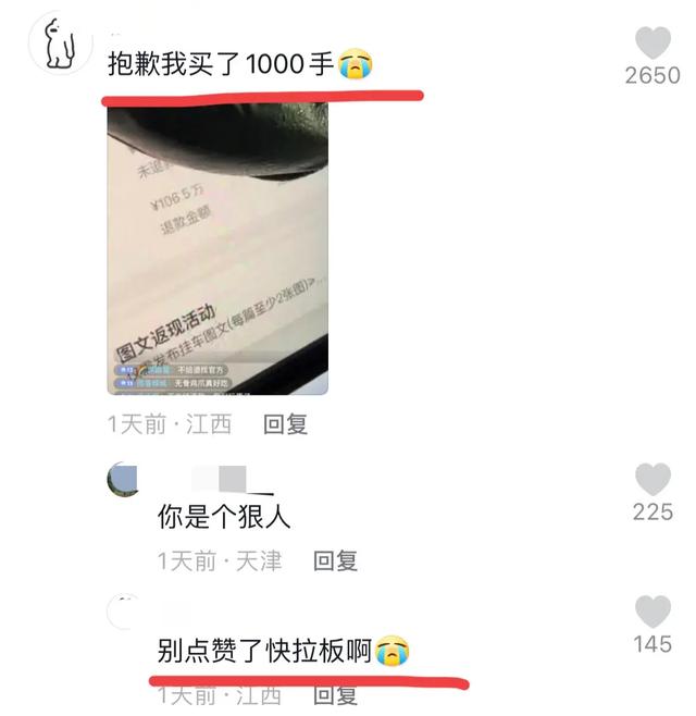 有些人一下子买几百几千个鸡爪结果没有第一时间点到退款,本来是一场娱乐性的消费,自己也没打算吃。