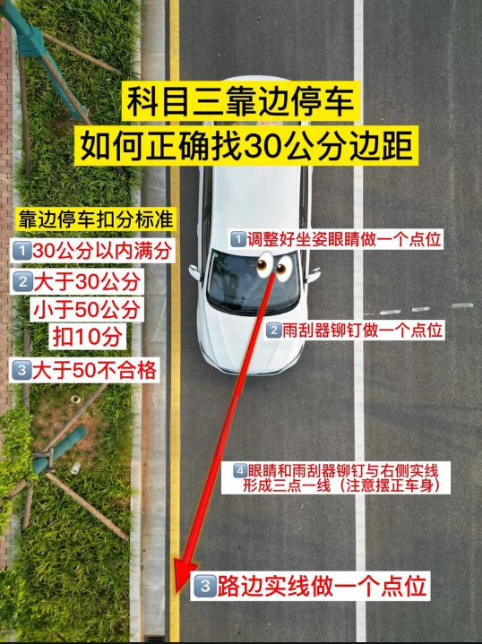 易错点④:靠边停车靠边停车是非常容易出现错误的,如果仅仅是距离没有保持在30cm以内,其他项目扣分的情况下,也是可以合格的。