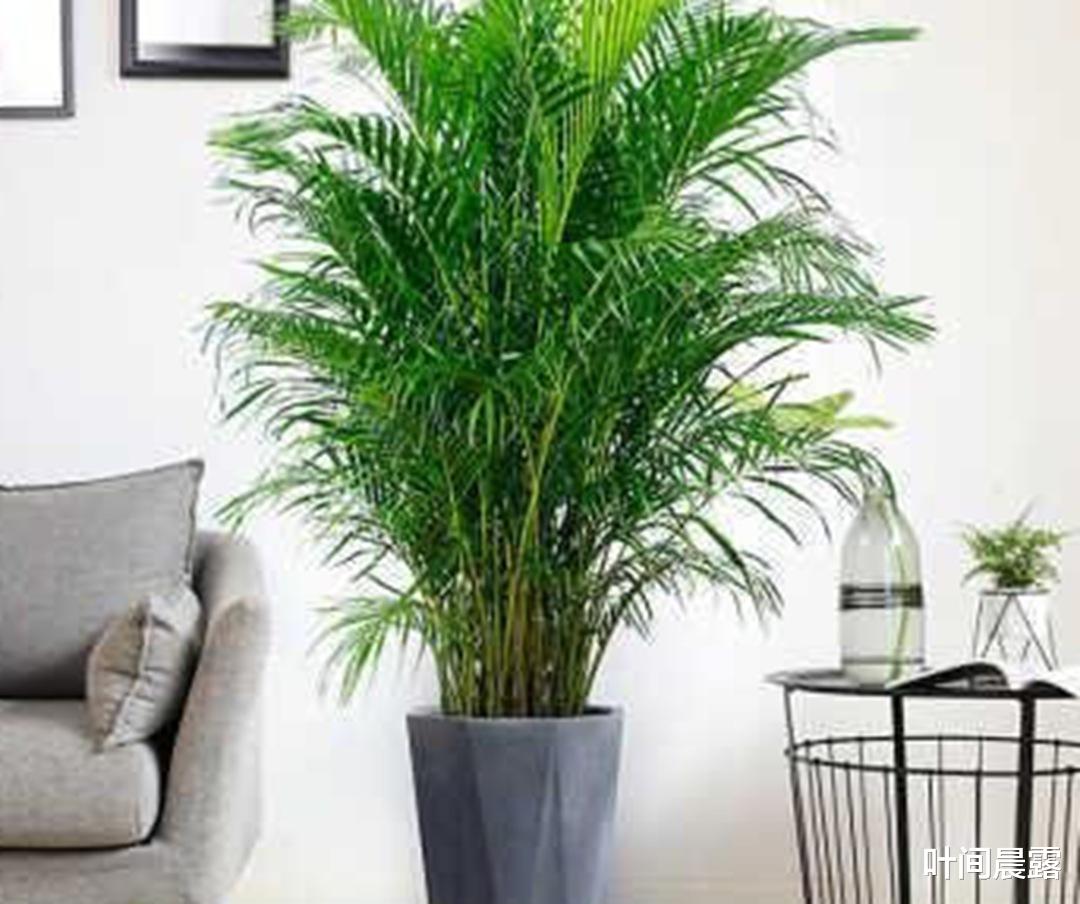 散尾葵,这是一种在家居装饰中经常能看到的绿植。它有着细长而柔软的叶片,植株整体造型优雅,给人一种热带风情的感觉。