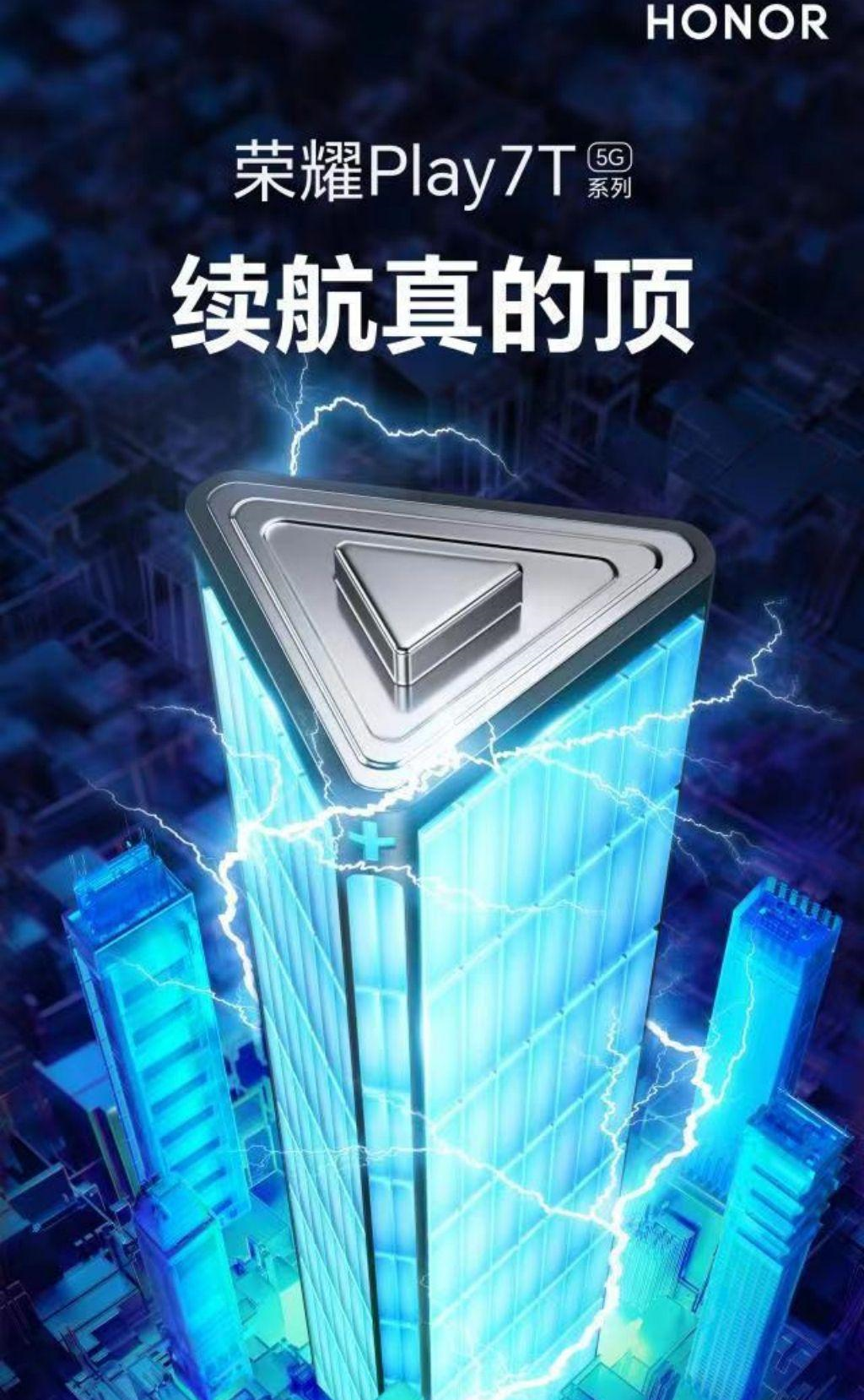 根据荣耀官方的最新预热,荣耀Play 7T主打超强续航,官方表示:“续航顶王荣耀Play7T来了! 6000mAh大电池、256GB大内存、6.74英寸高刷护眼屏,就是这么可靠。 3月28日,满电登场!”。