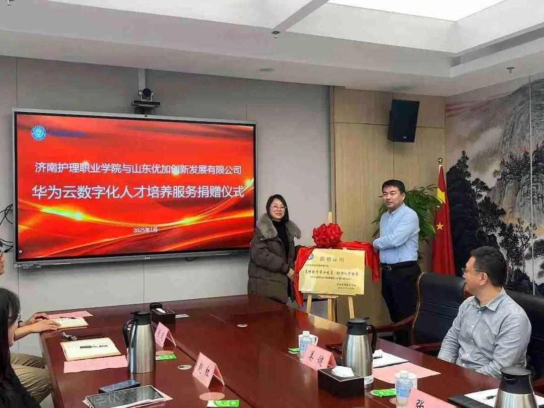 1月2日,学院与华为云计算技术有限公司(以下简称“华为云计算”)、山东优加创新发展有限公司(以下简称“优加创新”)和青软创新科技集团股份有限公司(以下简称“青软创新科技”)举行校企合作捐赠仪式。华为云计算山东代表处教育行业总经理张雨,优加创新联合创始人王西,青软创新科技山东总经理姜健,学院党委委员、副院长展永生参加捐赠仪式。