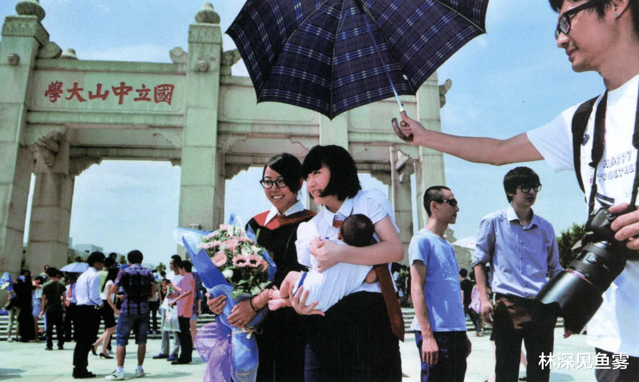 2012年,广东中山大学的毕业生正在拍摄毕业照片,只是这其中一家三口的一张毕业照片瞬间引起很多网友的关注。