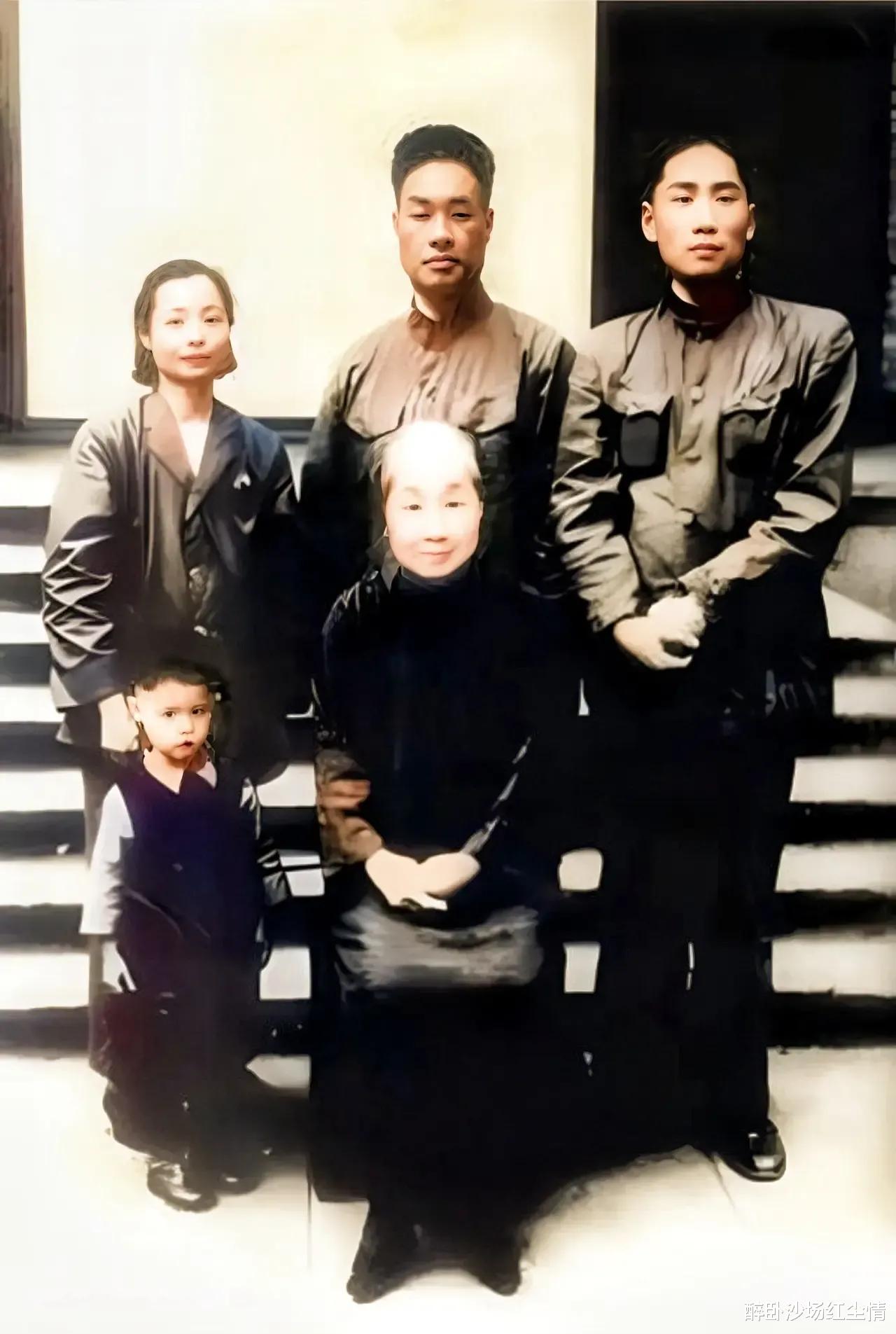 杨开慧的母亲向振熙80大寿合影,后排右起:毛岸英、杨开慧哥哥杨开智、嫂子李崇德、杨瑛