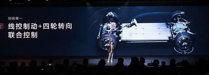 如果说舒适黑科技是智己L6的“面子”,那么其搭载的尖端智能技术则是“里子”。新车全系标配灵蜥数字底盘2.0,这一行业首创的技术将线控制动系统与智慧四轮转向深度融合。在极端场景下,例如220km/h高速爆胎或弯道双侧爆胎时,灵蜥爆胎稳定控制系统可在200毫秒内识别风险,并在40毫秒内通过四轮独立控制稳定车身,全程近乎“无感”,大幅提升行车安全。日常驾驶中,后轮支持双向共18度转向,令这款轴距接近中大型轿车的车型转弯半径仅4.69米,甚至比MINI Cooper更灵活,窄巷掉头轻松一把过。此外,800V超快充平台的加入,配合超远距高精度激光雷达与双Orin X芯片,让智己L6在补能效率与自动驾驶能力上跻身行业第一梯队。