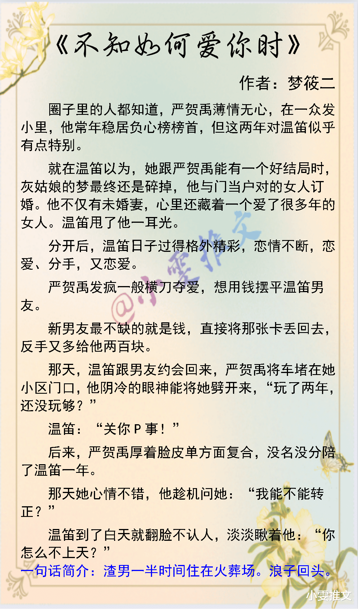 8、全文的基调属于酸酸甜甜的类型,恋爱文,有事业上升但比较镶边~