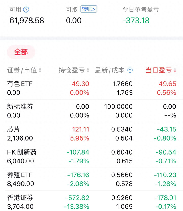 今日盈亏为-373.18元。