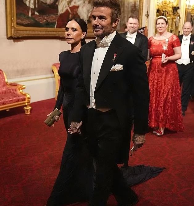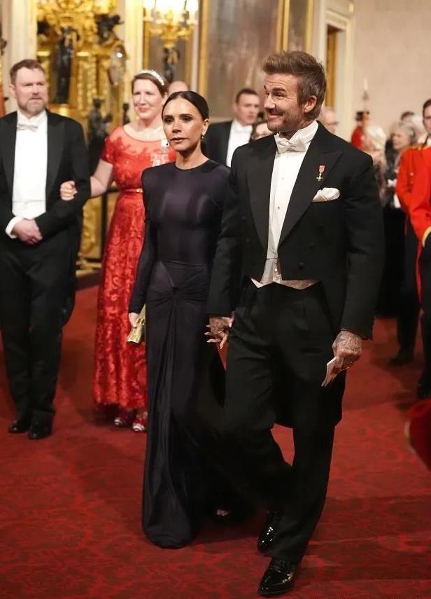 大概因为凯特王妃的缺席,贝克汉姆夫妇俩成为了当晚国宴上被媒体评为最受关注的一对。毕竟这对夫妻虽然和王室关系亲密,而且也已经年过半百,却是他们人生中首次参加英国王室国宴。