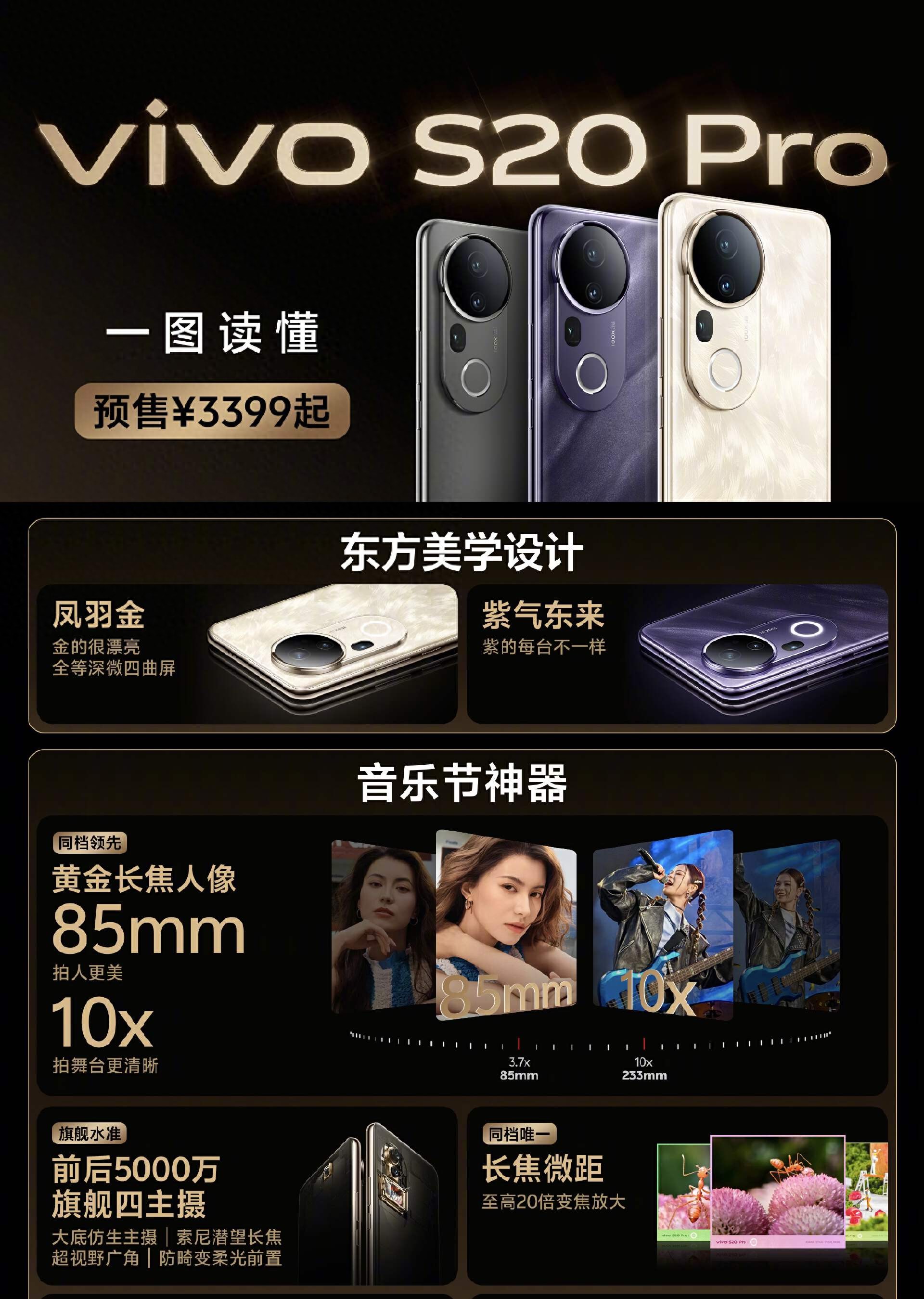 价格方面,vivo S20起售价格为2299元,vivo S20 Pro起售价格为3399元。快去预定吧!