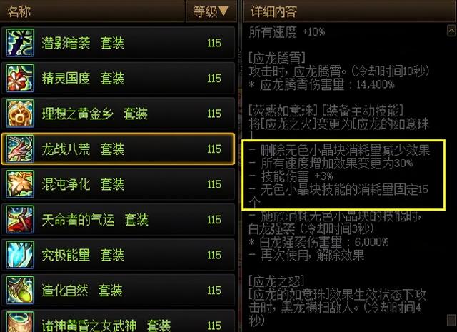 而相比之下,“龙战八荒”才是115版本最适合平民玩家的套装!