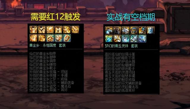 所以整体来说呢,“红12黄金乡”既有伤害、又有范围减伤速度,的确更胜一筹,但毕竟需要“红12”才能触发;