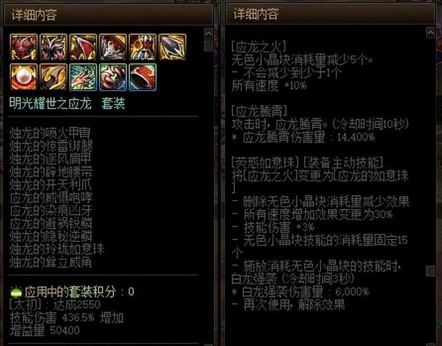 所以理论上来说,如果只有全身红11(及以下),那么更推荐“龙战八荒”。