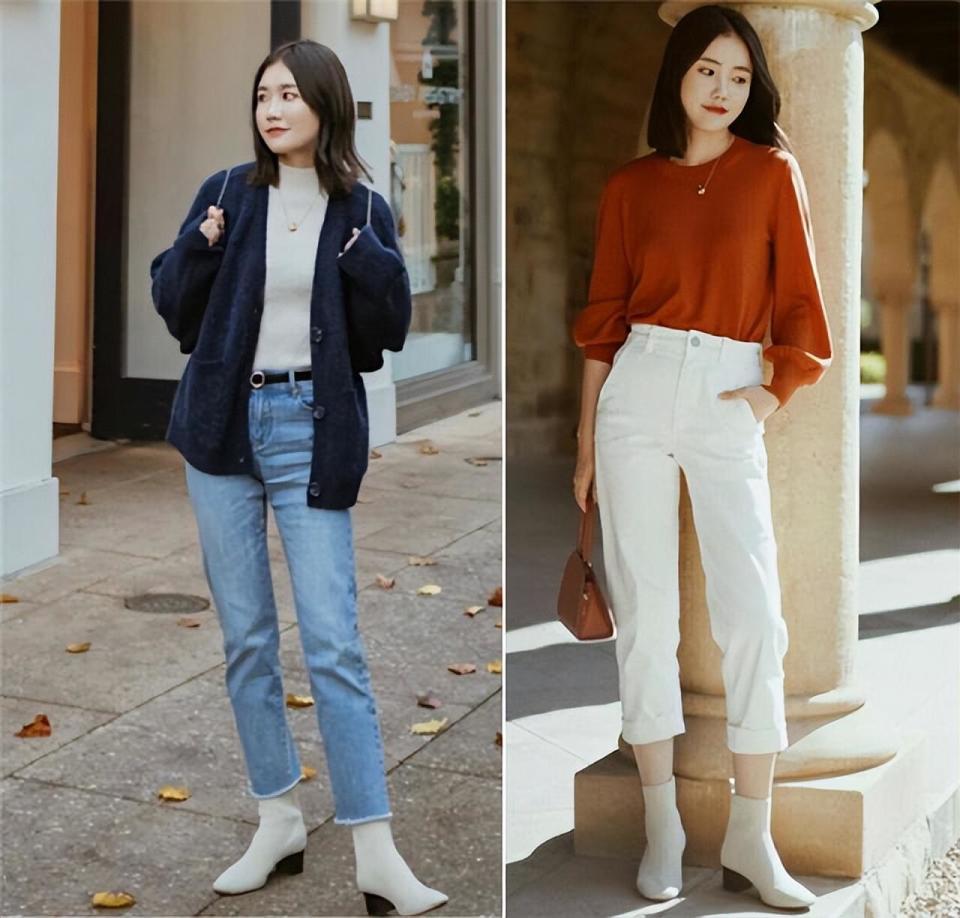 虽说高跟鞋增高效果更好,但是如果靴子高度太高,会影响我们搭配的舒适感,而这种低跟短靴鞋跟合适,再加上靴筒也恰好在脚踝处,就不会导致穿搭难度太大,适合日常搭配。