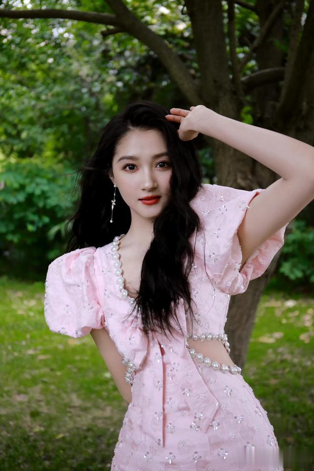 粉裳佳人 粉衣袅袅韵悠长, 珠饰盈盈映脸庞。 发髻精梳添秀雅, 旗袍温婉绽流