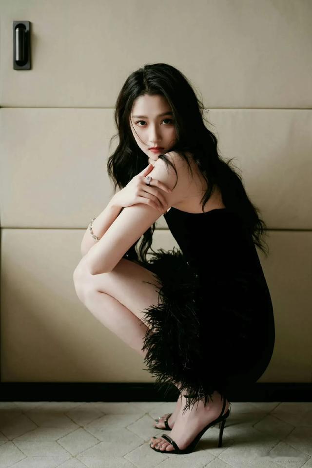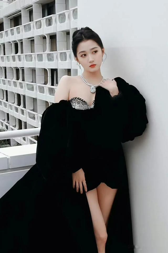 黑裙佳人 黑裙绒面映娇容, 盘发珠钗韵味浓。 颈饰华光添秀色, 亭亭玉立韵无