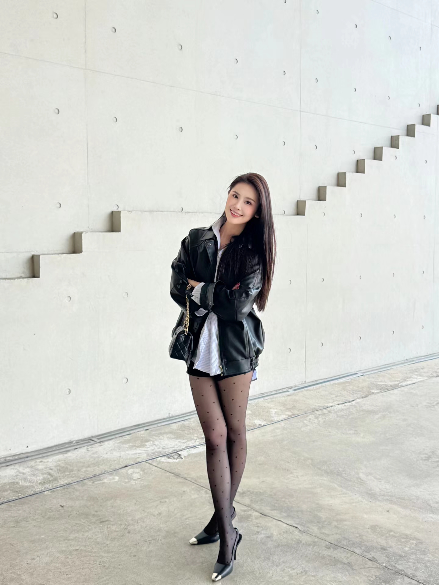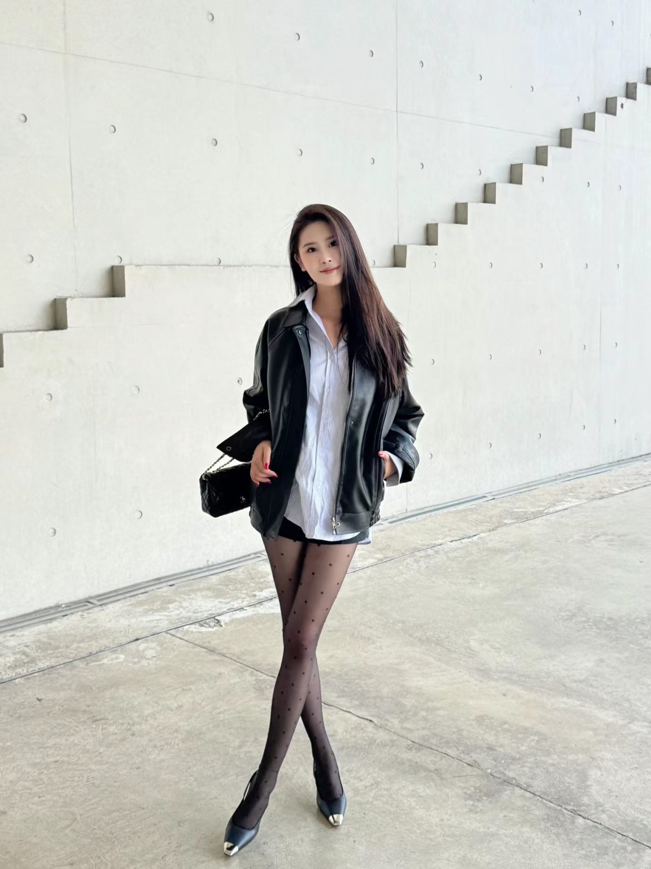 时尚的江湖里,总有些搭配让人拍案叫绝,比如黑皮夹克与波点丝袜的 “神仙打架”。一个酷帅到骨子里,一个复古温柔到极致,本以为是水火不容的较量,却碰撞出惊艳全场的火花。这套穿搭就像一场精心编排的舞台剧,每个单品都有自己的角色,合在一起便是时尚界的 “王炸组合”。今天,咱们就来拆解这场时尚较量里的玄机,看看黑皮夹克、白衬衫、波点丝袜们如何联手演绎 “又酷又欲” 的终极法则。