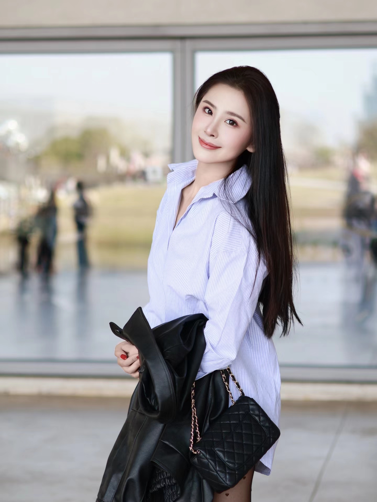 白衬衫,时尚界的 “百搭之王”,在这套穿搭里当了回 “温柔刺客”。经典基础款的设计,长下摆悄悄外露,和黑皮夹克玩起 “内长外短” 的游戏。这小心机可不简单,不仅增加了层次感,还把知性气质拿捏得死死的。别人看到的是白衬衫的简约,懂行的才知道,里面藏着 “以柔克刚” 的时尚智慧。