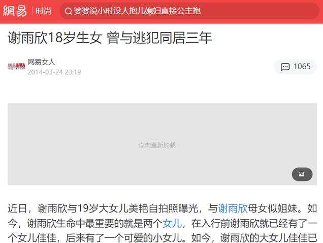 谢雨欣18岁生女 曾与逃犯同居三年=网易女人2014-03-24 23:19