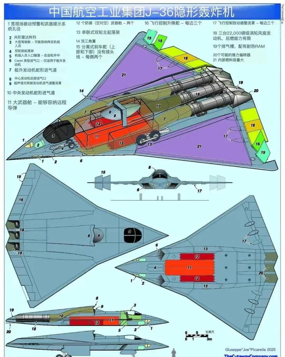 武器挂载方式或创新目前尚未发现歼-36配备侧弹仓的明确证据。相比之下,歼-20和F-22等战斗机均配备侧弹仓,以便携带格斗导弹,提高空战能力。如果歼-36确实没有侧弹仓,可能意味着其武器挂载方式将有所创新,比如通过机腹内置弹仓或外挂武器模块提升作战能力。当然,也可能是现有图片的清晰度有限,无法确认这一点。