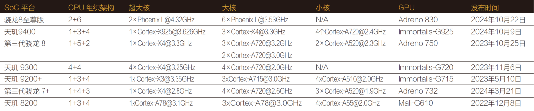 天玑9200+ 第三代骁龙7+ 天玑8200
