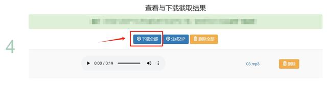 步骤3:工具完成m4a文件转换后,大家需要将页面向下翻,在下面大家就可以找到转换好的MP3文件,在文件上方会有下载全部按钮,点击这个按钮就可以将转换好的MP3文件下载下来。