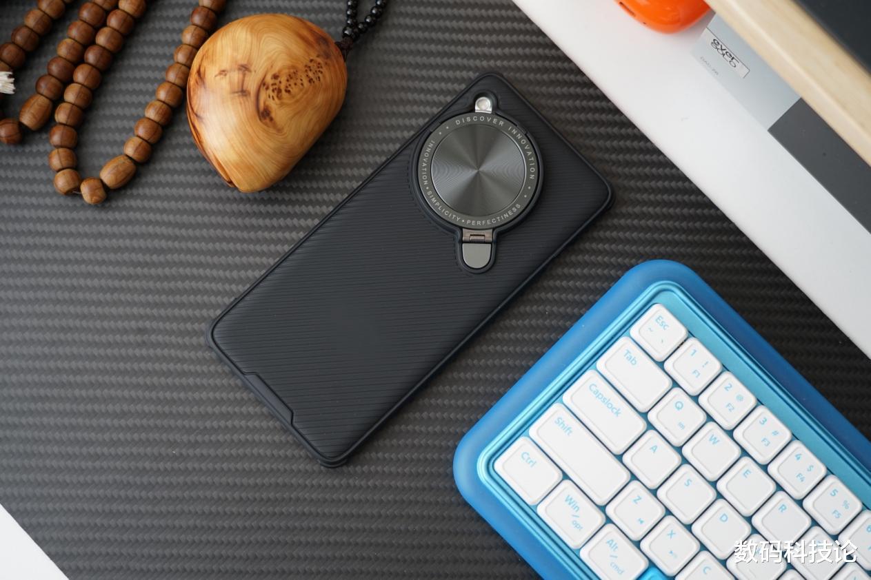 给我的一加12选的是耐尔金 黑镜Prop磁吸款,这款手机壳的特点是黑色商务风格的纹理设计(同款还有一个蓝色的),带全封闭可开合的镜头保护盖。