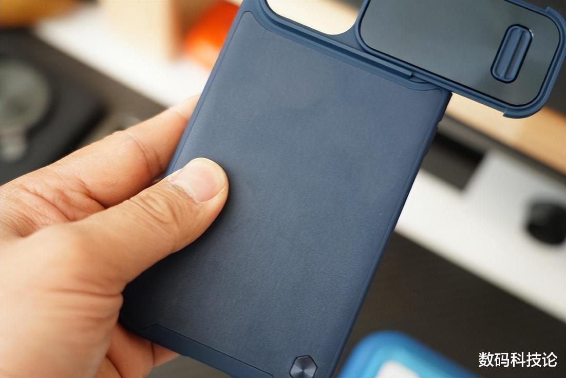当时选手机壳的时候我同事好友也在身边,所以就顺便也给他也选了一款。不过为了避嫌,没有选和我一样的,而是选了森蓝色的耐尔金 素逸S皮革款。这款的特点是后盖的镜头保护盖采用了半自动弹盖的设计,细节做得也很好,也有金属装饰。
