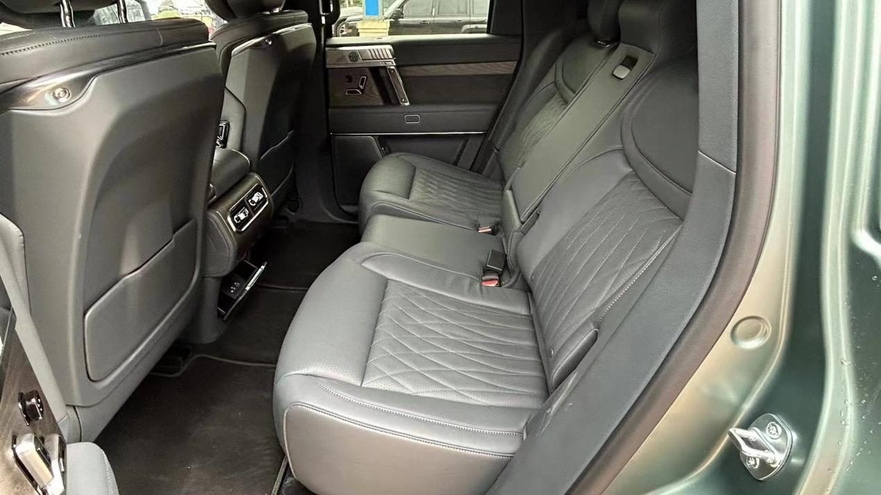 猛士917的车身尺寸为4987*2080*1935mm,轴距为2950mm,整体尺寸还是非常夸张的,但受限于非承载式车身设计,空间利用率并不高,所以车内空间只能是勉强算大。座椅采用全Nappa真皮材质,并在座椅设计时增加了人体工学理念,坐垫及腰托区域搭配菱纹缝线,提升了车内的豪华质感。后排坐垫两侧拥有较强的包裹感,搭配宽大的头枕,为后排乘客营造出更加舒适的乘坐环境。