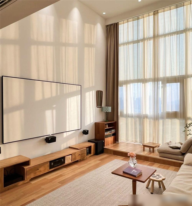 好像进入了大户型别墅。这对夫妻所晒出的装修图中,给我第一印象最深的就是这对公寓的客厅。