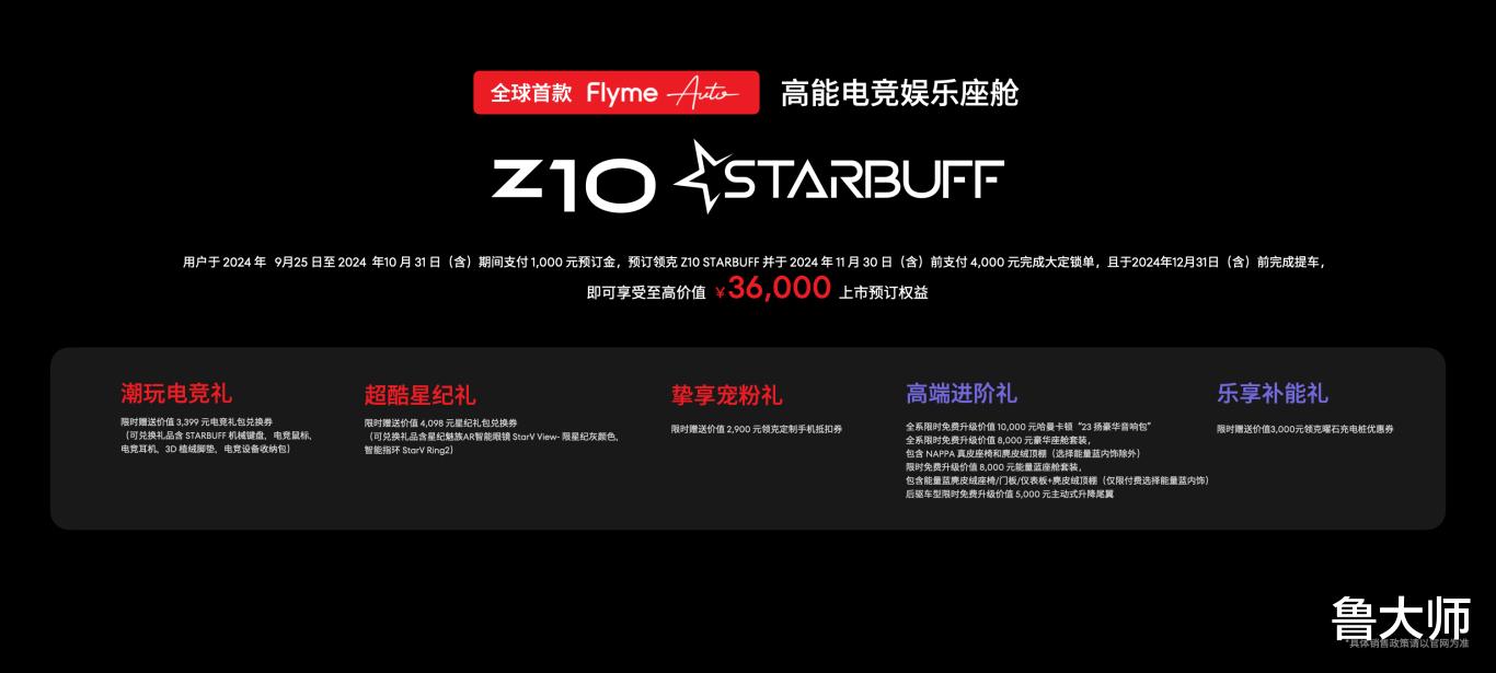 作为星纪魅族与领克联合打造的首款电竞定制版车型,Z10 STARBUFF 针对电竞兴趣人群进行深度定制,并在领克 Z10 基础车型上叠加全球首款 Flyme Auto 高能电竞娱乐座舱,实现 3A 单机游戏和 PC 端游双重自由。