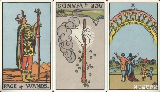 卜牌:权杖侍从+ 权杖首牌- 圣杯十+