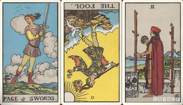 卜牌:宝剑侍从+ 愚人- 权杖二+