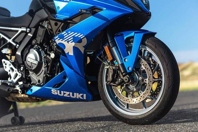 GSX-8R主打的仍是“铃木蓝”配色,独特的堆叠式LED大灯,搭配铃木刀式导流罩。侧包围面积适中,发动机和副车架部分裸露在外,镂空设计增加了层次感。