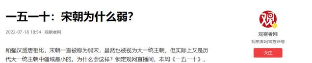 信源:一五一十:宋朝为什么弱?——2022-07-18 ·观察者网