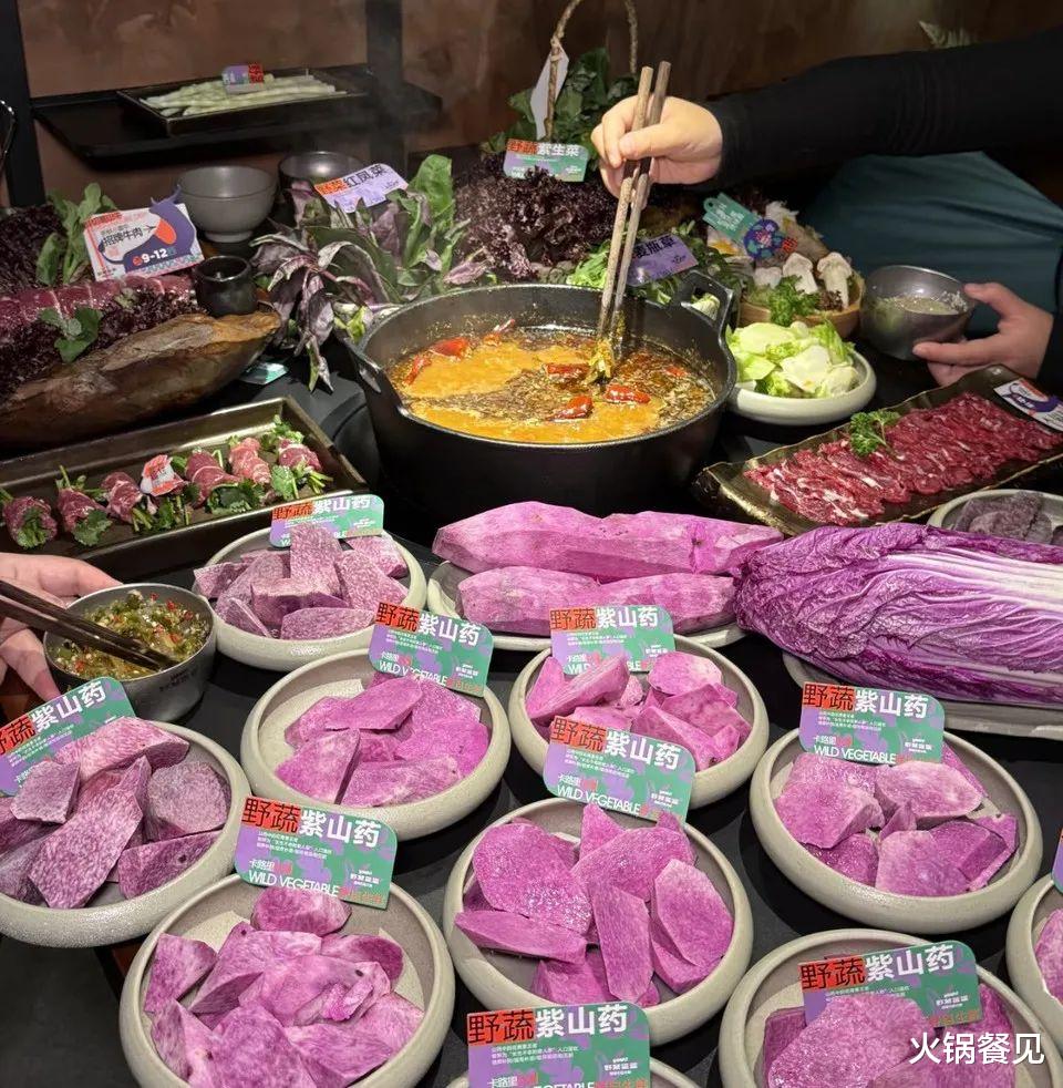 “漂亮菜”频出的云南,把紫色蔬菜带向全国各地。比如滇牛云南酸菜火锅、山缓缓火锅、望三三·斑鱼海鲜粥火锅、野菜篮篮·野菜牛肉火锅等,都陆续上新了有“紫人参”之称的云南紫山药。