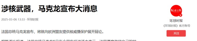那意思分明就是:法国想给欧洲当核保护伞,别做梦了,俄罗斯可不是吃素的。