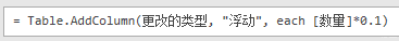 4. 在弹出的对话框中输入所需的列名 --> 在公式区域输入 [数量]*0.1 --> 点击“确定”: