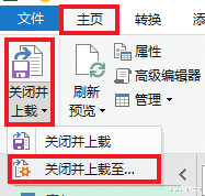 7. 选择工具栏的“主页”-->“关闭并上载”-->“关闭并上载至”