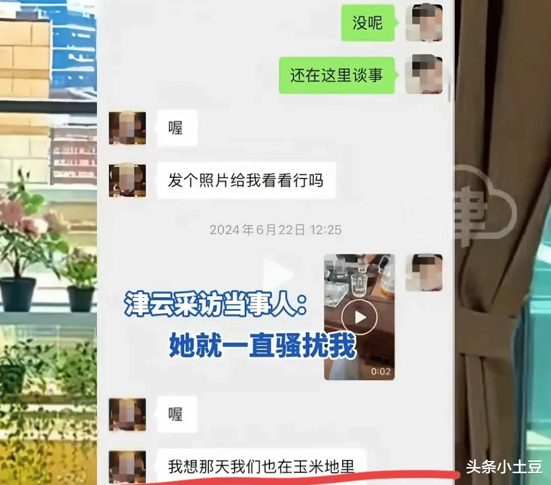 从聊天截图看,从去年6月份就开始聊天了。似乎女房东有点主动,就向对方要照片,女房东收到小伙发来的视频后,就说“我想那天我们也在玉米地里!”。真的太露骨了。