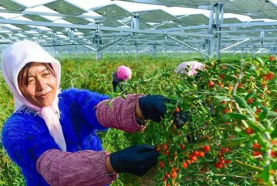 例如,在宁夏黄河东岸,曾是荒漠化最为严重的地区,漫天黄沙、尘土飞扬,严重影响宁夏地区的生态环境和人民生活。为此,宁夏宝丰集团利用宁夏千年特色产业枸杞,种植10万亩优质有机枸杞,同时综合利用土地资源,在枸杞上方建设了640MW农光互补智能光伏电站,该项目全部采用华为智能光伏解决方案以及最高效的330瓦单晶硅组件,并应用国际最领先的智能逆变器和带倾角平单轴自动跟踪技术。不仅是全球单体容量最大的跟踪式农光互补光伏电站,还创造了建设周期最短、技术最先进的行业奇迹。