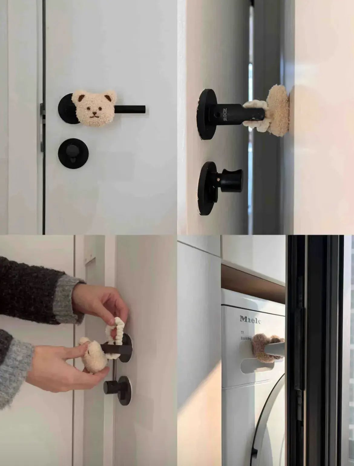 挑孩子的玩偶皮筋,绑在把手上就行,软绵绵的玩偶完全能缓冲掉门的撞击,还多少有些可爱在门上的。