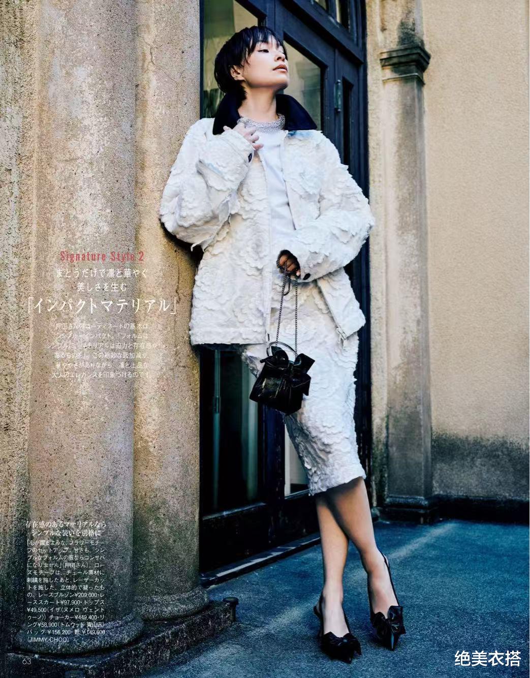 对于优雅白,它不仅是一种意象色调,还是一类风格代言。所以落到现实里,并不像华丽白、洒落白那样,有直接的单品可代表。