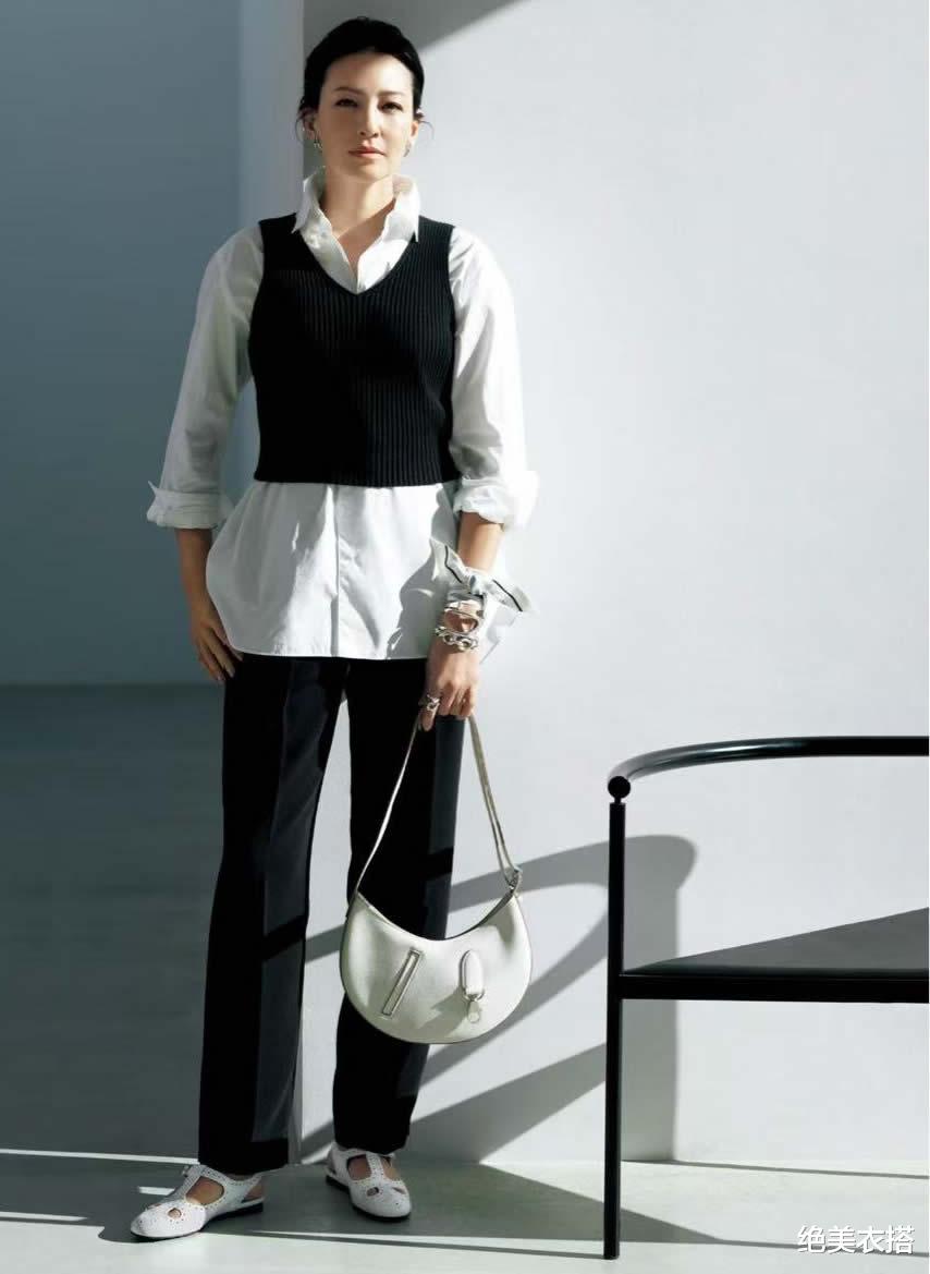 一身白色穿搭,上有乳白衬衫风的干练,下有纯白阔腿裤的洒落,中有柔和白背心的自然衔接......