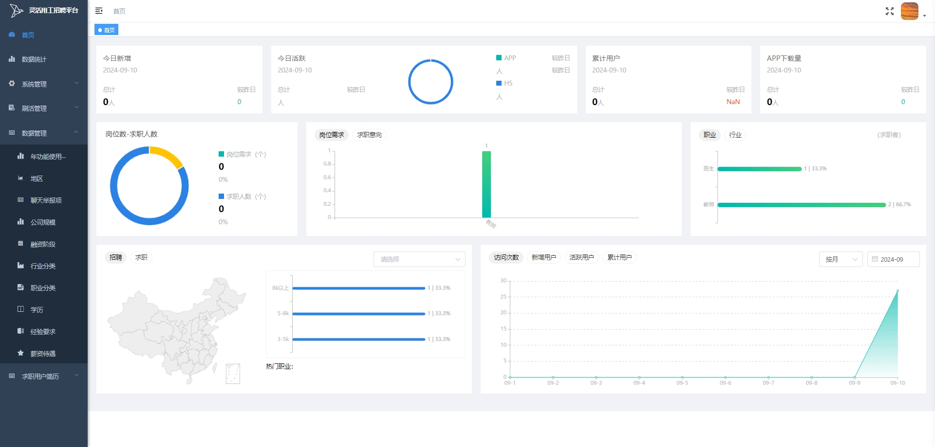 优秀功能解析管理端首页:展示系统的概览、最新通知或统计数据,帮助管理员快速了解平台动态。数据统计:通过图表、报表等形式展示和分析系统内的数据,帮助用户理解数据趋势和关键指标。用户管理:允许管理员添加、删除或修改用户账户信息,包括权限分配和用户资料管理。角色管理:定义和管理不同的用户角色,以及每个角色的权限和访问控制。菜单管理:配置系统菜单,包括添加、删除或修改菜单项,以适应不同用户的需求。个人端个人简历:用户可以编辑和完善自己的在线简历,包括基本信息、求职状态、求职意向、期望薪资和工作地点。职位搜索:提供职位搜索功能,展示推荐职位列表,用户可以根据经验、学历、薪资、公司规模等条件筛选职位。消息列表:用户可以查看和管理与招聘方的聊天消息,跟踪招聘进展。企业管理招聘记录:记录和管理所有的招聘活动,包括发布的职位、收到的简历、面试安排等。企业福利:提供给企业客户的福利或优惠,可能包括折扣、额外服务等。代码结构与框架优势服务端MySQL 5.7+ :作为数据库,确保数据稳定性和高效性。JDK 1.8+ :提供Java运行环境,支持复杂的业务逻辑处理。Redis:作为缓存,提升数据访问效率,减少数据库负载。前端VUE 2.6.14:与element-ui 2.15.6结合,提供响应式和组件化开发,界面开发高效灵活。NODE 14.21.3 (>=8.9) & NPM: >=3.0.0:保障前端开发环境稳定,依赖管理便捷。结语