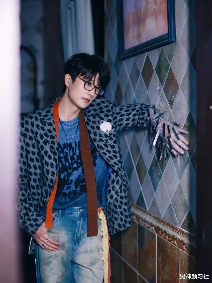 更受欢迎的单品其实是印花西装,花色鲜艳,剪裁合身的特别好卖。如果你是不太会穿搭的,牢记我的话,全身蓝色能够让你的穿搭变得很好看。他的这一身就还蛮典型的,外套是这种斑点还蛮大的印花,相对来说没那么难驾驭。