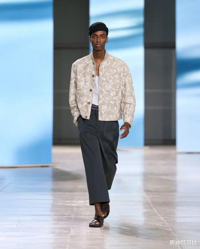 也可以看看张栋梁的选择,他也选的这种花色比较复杂又充满意大利风情的花纹,同时也很聪明,内里选了大量的白色做过渡。如果你想让自己的穿搭看上去不那么复杂的,也可以把下半身换成白色裤子,整体上会清爽特别多。