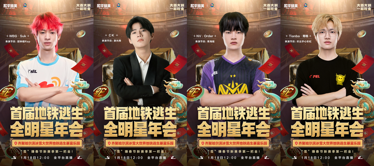 大吉大利,一起吃金!《和平精英》地铁逃生模式“金”喜更新!线上CH·4赛季登场,海量玩法亮相,还有“地铁逃生首届财神节”等待各位特种兵前来吃金来财;线下“首届地铁逃生全明星年会”重磅开幕,16位主播齐聚哈尔滨冰雪大世界地铁逃生暴富乐园,全平台直播邀你一起“雪”赚春节新赛季第一把金!