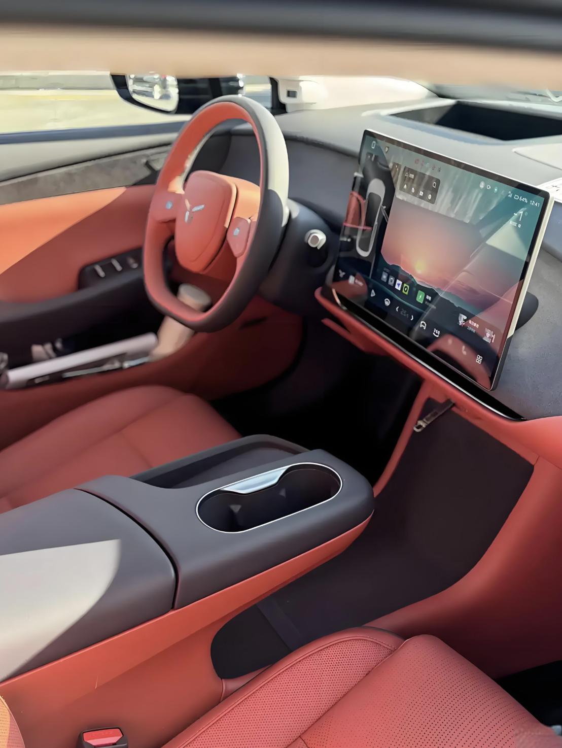 红旗天工05车内采用双色搭配,大面积软性材质和环保材质的铺陈,不仅看上去更加清爽、自然,还没有太多的异味,打造出了高级质感的舒适、安静、环保座舱,十分符合新能源汽车的特色。标准的T字形中控台配备了双幅式方向盘和电子怀档换挡机构,采用无仪表盘设计,取而代之的是大尺寸AR-HUD抬头显示。车顶配备了全景天幕,车内配备了真皮沙发座椅,副驾座椅带有腿托功能,主副驾座椅都带有头枕软垫,让乘客的舒适性得到了提升。后排座椅配备中间座位头枕和中央扶手,还提供了后排出风口、双USB Type-C充电口和12伏电源口。