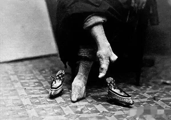 裹脚妇女,小脚藏无尽痛苦,脚趾被弯折、挤压,严重变形,每一步都似踩在刀尖,尽显旧俗残害之深。