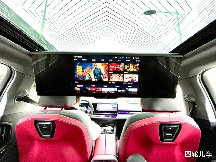 后排超大的娱乐屏可以证明一切,全尺寸SUV或MPV都没有这么大尺寸的屏幕,虽然需要顶配车型选配才可实现,但绝对是“遥遥领先”,科技感直接拉满。