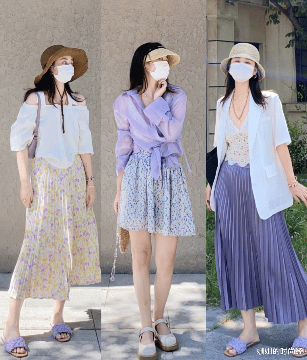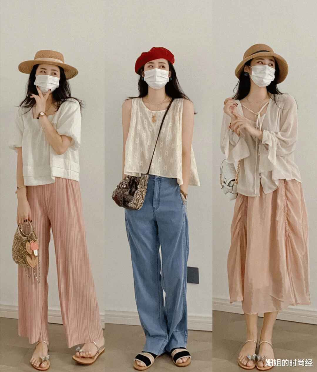 所以搭配的时候首选白色,清浅柔和的配色,清新感十足。如灰蓝色阔腿裤+白色背心、栗粉色半裙+白色小衫,都是雅致中带着几分女人味,可以说是是夏季的不二之选。